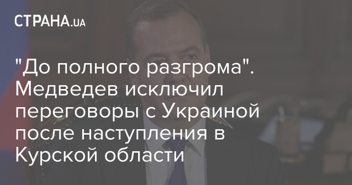 Заместитель главы Совета безопасности РФ Дмитрий Медведев заявил, что после начала наступления ВСУ в Курской области с Украиной "не будет никаких переговоров до полного разгрома".