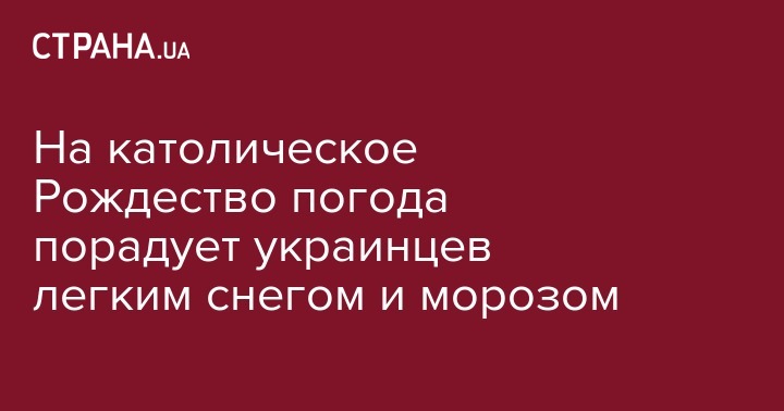 "В воскресенье, 25 декабря, в Украине установится облачная погода, по всей территории страны пройдет небольшой снег", - говорится в сообщении.