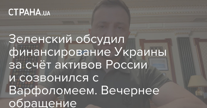 Зеленский обсудил финансирование Украины за счёт активов России и созвонился с Варфоломеем. Вечернее обращение