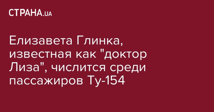 Елизавета Глинка, известная как "доктор Лиза", числится среди пассажиров Ту-154