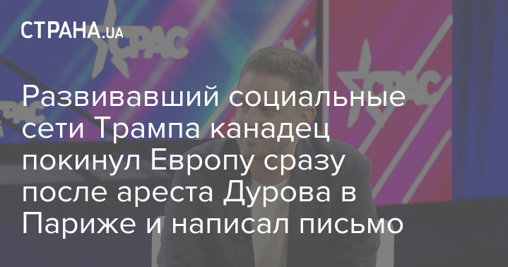 Развивавший социальные сети Трампа канадец покинул Европу сразу после ареста Дурова в Париже и написал письмо