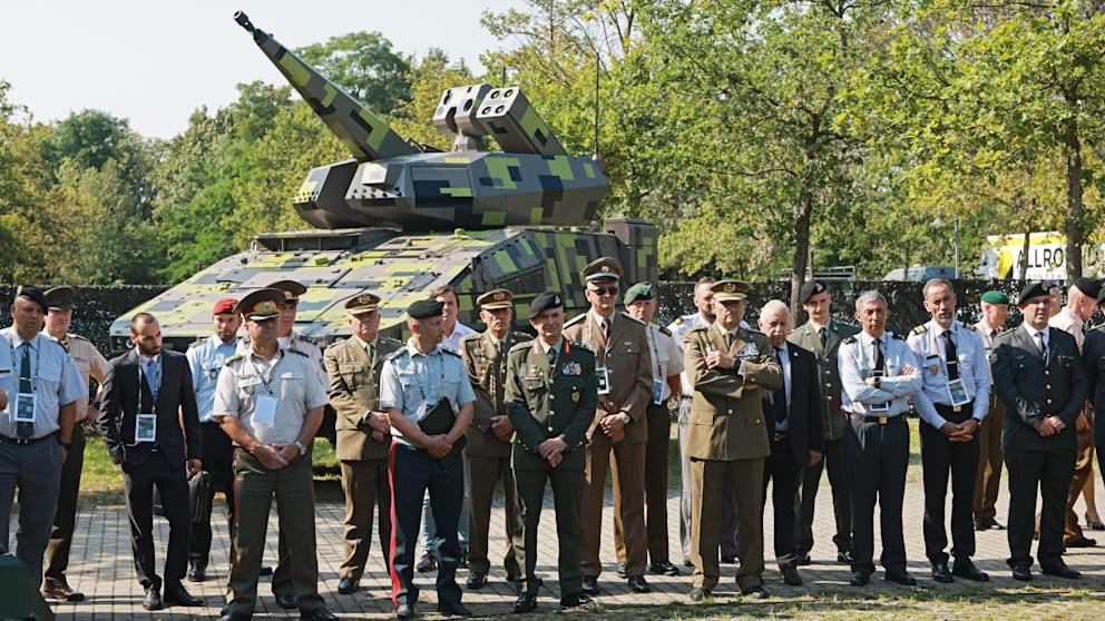 На мероприятии были представлены новейшие образцы немецкой военной техники: колёсный комплекс ПВО Skyranger для борьбы с дронами и беспилотная колёсная гаубица RCH-155, первые 54 образца которой попадут в Украину в следующем году.