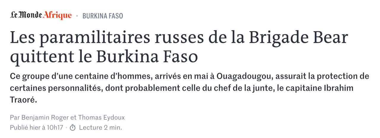 В мае около сотни наемников компании отправили в столицу Буркина-Фасо Уагадугу, где их задачей было обеспечение охраны ключевых фигур, в том числе Траоре.