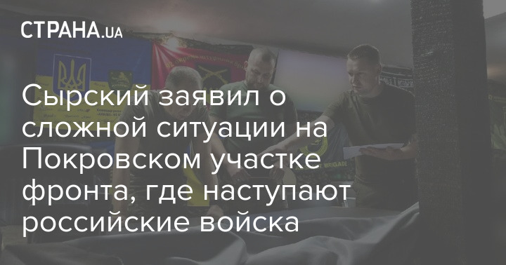 Главнокомандующий ВСУ Александр Сырский заявил о сложной ситуации на Покровском участке фронта, где наступают российские войска.