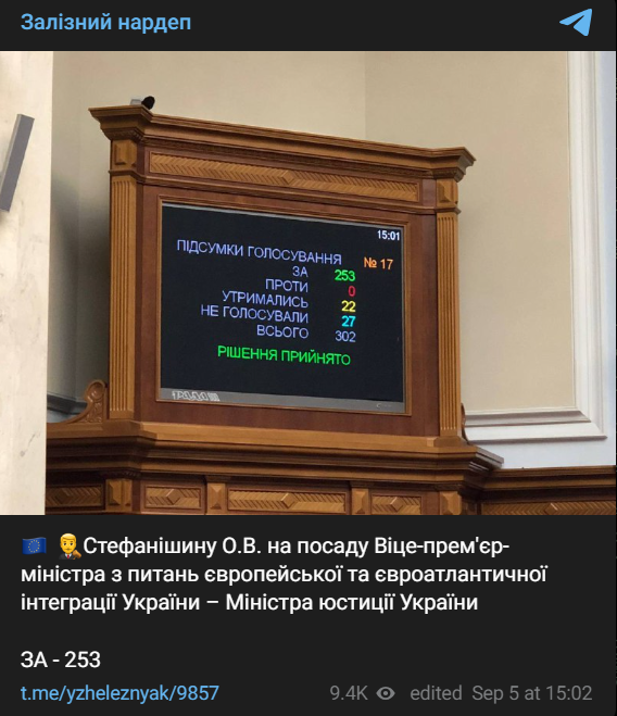 Вчера Рада проголосовала за отставку Александра Камышина с должности главы Министерства по вопросам стратегических отраслей промышленности Украины, Ольги Стефанишиной с должности вице-премьера, министра по вопросам европейской и евроатлантической интеграции, Руслана Стрельца - с должности министра защиты окружающей среды и природных ресурсов, а Дениса Малюськи - с должности министра юстиции.