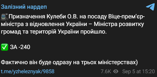 Алексея Кулебу назначили на должность вице-премьера, министра по восстановлению Украины, министра развития общин и территорий Украины.
