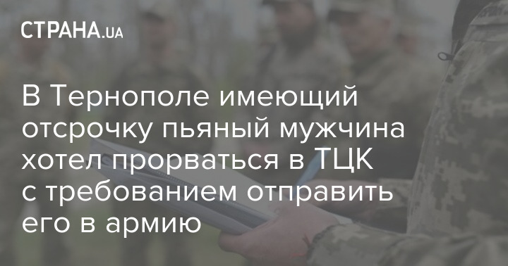 В Тернополе пьяный мужчина, имеющий отсрочку от мобилизации, устроил дебош в ТЦК, требуя, чтоб его взяли в армию.