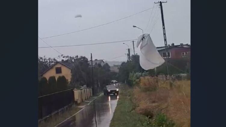 В сети появилось видео, как в Польше десантники НАТО во время учений приземлились на село вместо запланированного пустыря. Один из них повис на проводах.