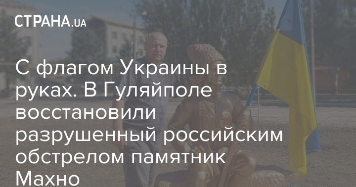 С флагом Украины в руках. В Гуляйполе восстановили разрушенный российским обстрелом памятник Махно
