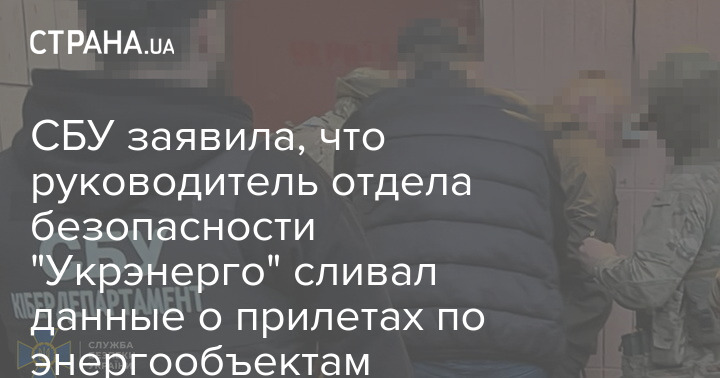 СБУ заявила, что руководитель отдела безопасности "Укрэнерго" сливал данные о прилетах по энергообъектам