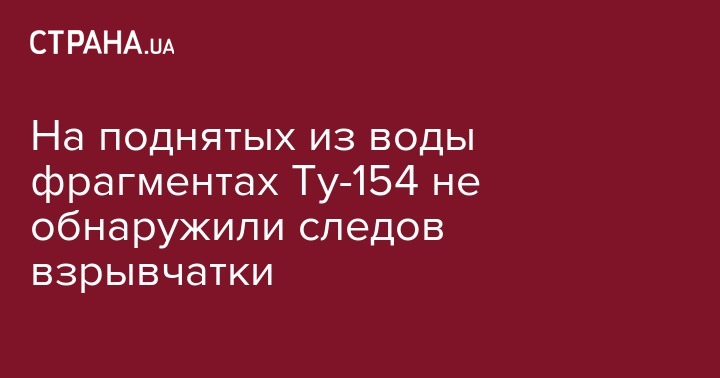 На фрагментах самолета Ту-154, потерпевшего катастрофу в Черном море, а также поднятых из воды телах погибших, не обнаружили следов взрывчатки и повреждений, свидетельствующих о внешнем воздействии. Об этом сообщает "Интерфакс" со ссылкой на источники, знакомые с ситуацией.