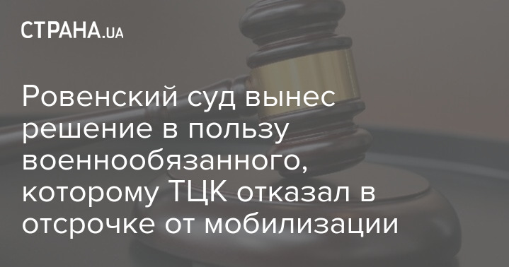 Ровенский суд вынес решение в пользу военнообязанного, которому ТЦК отказал в отсрочке от мобилизации