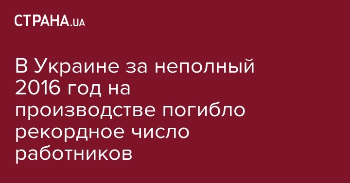 В Украине за последний год рекордно увеличилось количество смертельных случаев на производстве. Об этом сообщает пресс-служба Государственной службы по вопросам труда.