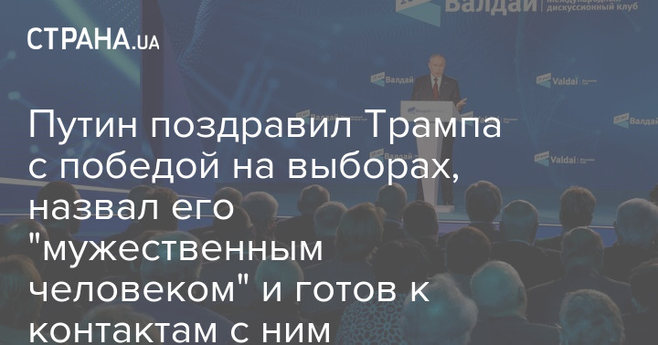 Путин поздравил Трампа с победой на выборах, назвал его "мужественным человеком" и готов к контактам с ним