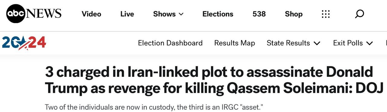 "Министерство юстиции предъявило обвинение представителю иранского режима, которому было поручено руководить сетью из криминальных элементов для осуществления планов Ирана по уничтожению ряда целей, в том числе избранного президента Дональда Трампа", – говорится в статье.