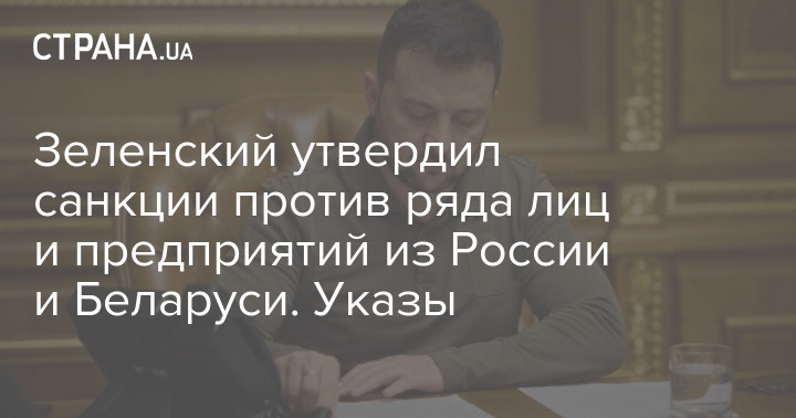 Зеленский утвердил санкции против ряда лиц и предприятий из России и Беларуси. Указы