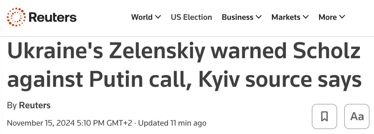 Между тем Reuters со ссылкой на источник в Офисе президента Украины написало, что Владимир Зеленский был против намерения Шольца позвонить Путину и уговаривал канцлера этого не делать.