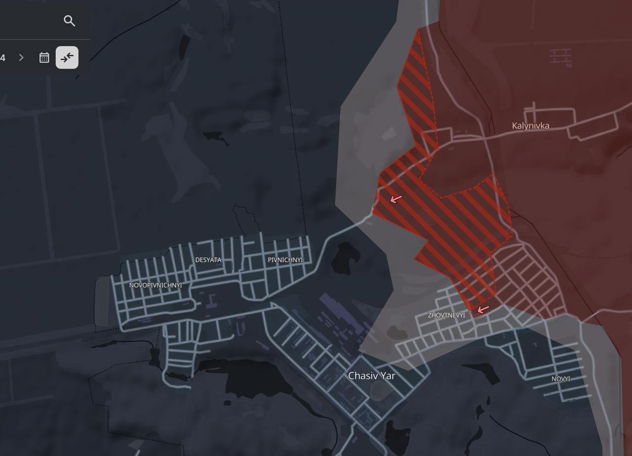 При этом, по карте Deep State, продвижений у РФ к югу от Часова Яра за последнее время не было.