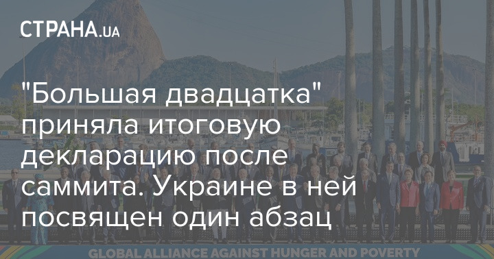 Опубликована итоговая декларация саммита "Большой двадцатки" (G20), который начался вчера в Рио-де-Жанейро и завершился сегодня.