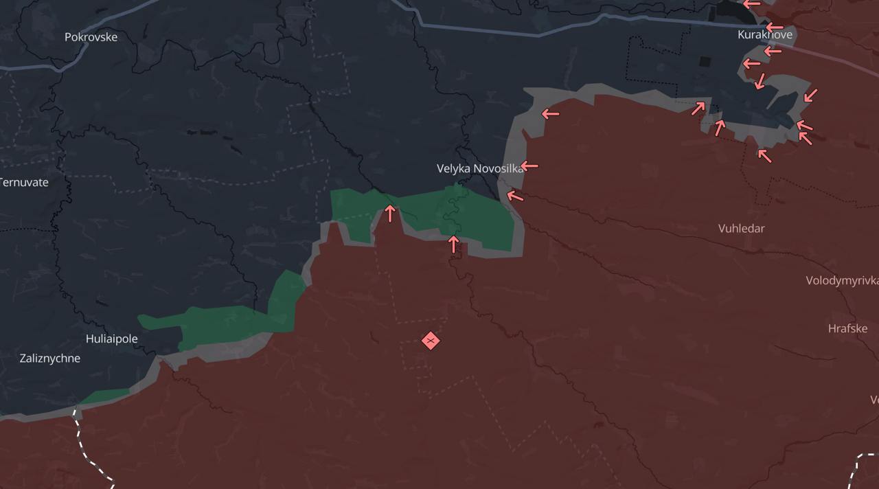 08:27 Российские войска вчера прорвались к окраинам Великой Новоселки в Донецкой области. Там наступили "крайне тяжелые времена", пишет украинский военный паблик Deep State.