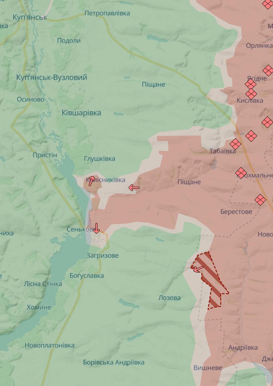 Также на Купянском направлении есть продвижение РФ в сторону Лозовой.