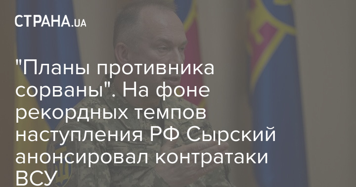 "Планы противника сорваны". На фоне рекордных темпов наступления РФ Сырский анонсировал контратаки ВСУ