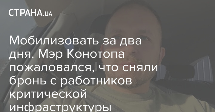 Мобилизовать за два дня. Мэр Конотопа пожаловался, что сняли бронь с работников критической инфраструктуры