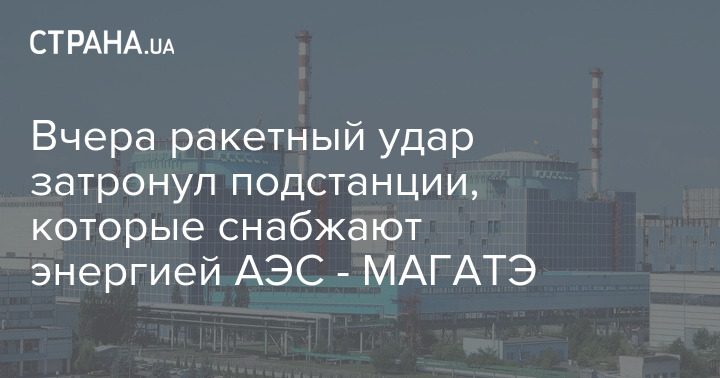 Вчерашний ракетный удар РФ затронул подстанции, которые снабжают энергией АЭС. Об этом говорится в заявлении МАГАТЭ со ссылкой на власти Украины.