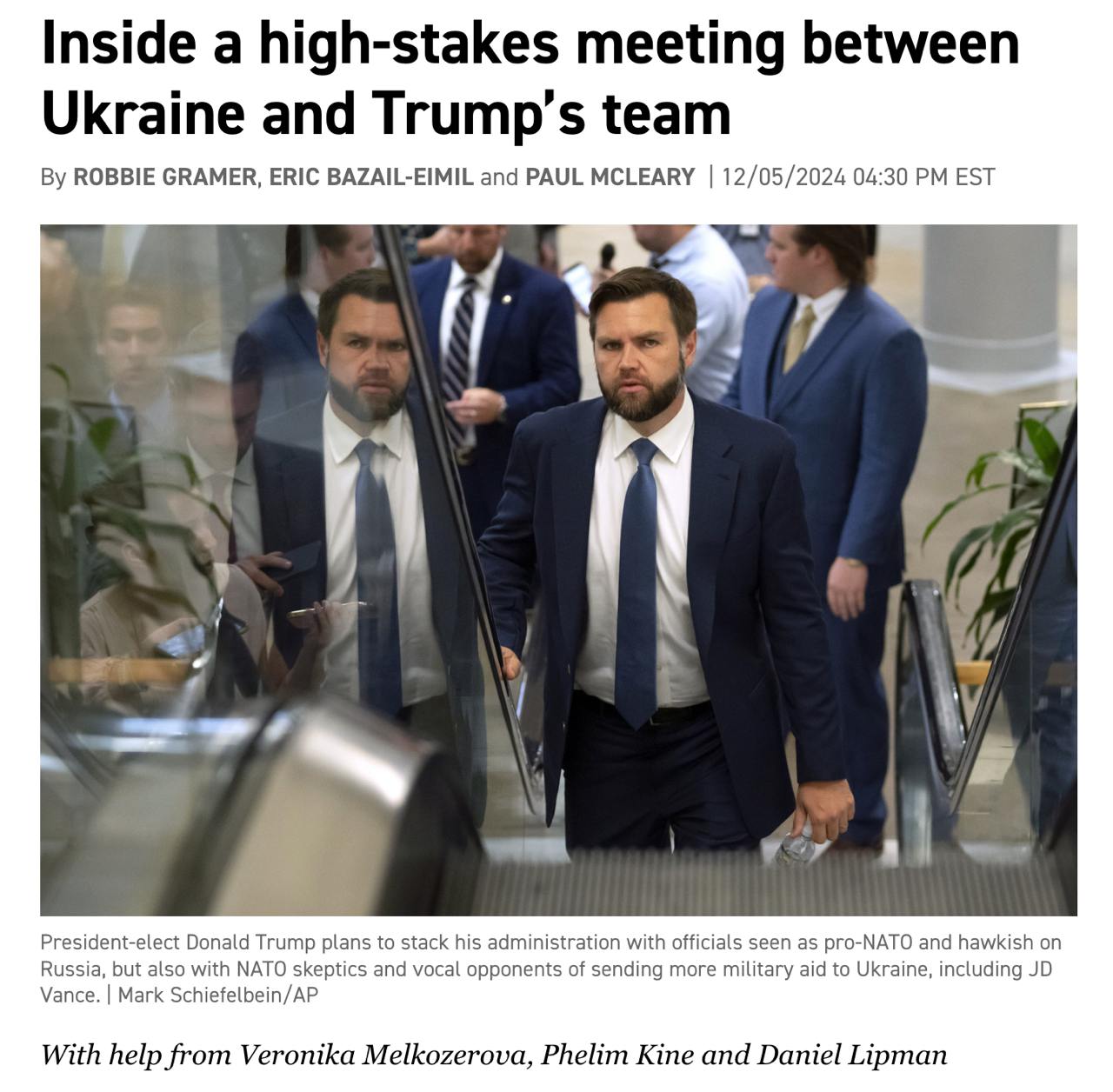 "Встреча должна была стать знакомством и приветствием для обеих сторон, чтобы узнать друг друга и начать развивать личные отношения перед вступлением Трампа в должность в январе. Встреча с Уолтцем и Вэнсом была долгой и содержательной и украинская сторона осталась довольна тем, как все прошло", - говорит источник.