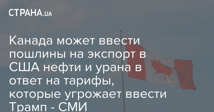 Канада может ввести пошлины на экспорт в США нефти и урана - в ответ на тарифы, которые угрожает ввести новоизбранный президент США Дональд Трамп.