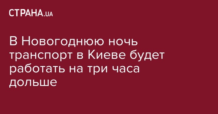 В столице Украины, в ночь с 31 декабря на 1 января, будет продлена работа общественного. Работа киевского метро и маршрутных автобусов будет продлена на 3 часа. Об этом сообщает УНИАН.