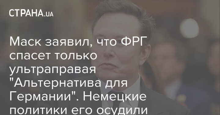 Американский миллиардер Илон Маск заявил, что только ультраправая партия "Альтернатива для Германии" может спасти европейскую страну.