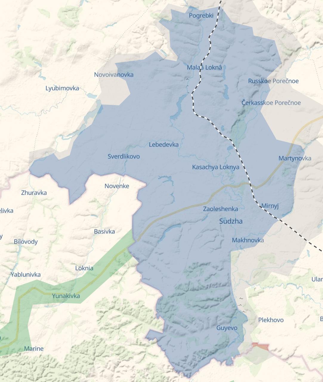 Украинские военные карты этого пока не отображают. Российские военные паблики пишут о своем продвижении южнее Суджи в направлении Махновки, а также о продвижениях севернее в районе Русского Поречного.