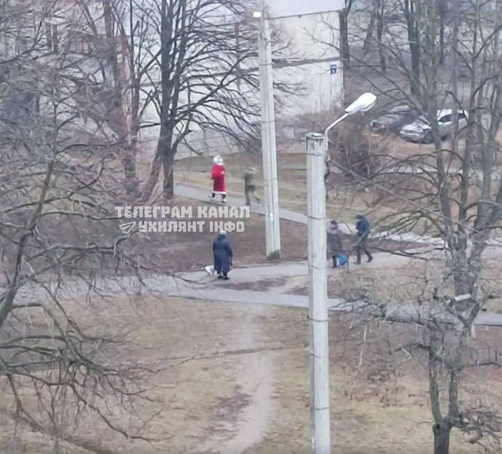 13.42 Паблики пишут, что на кадрах - задержание военкомами Санта-Клауса в Харькове. А затем уточнили, что Санта и мужчина в военной форме вместе раздавали детям подарки.