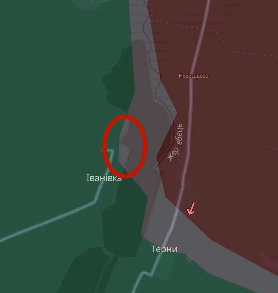 Лейтенант ВСУ Алекс сообщает, что на севере Донецкой области, под Тернами, россиян уже выбили из села Ивановка на противоположном берегу водохранилища, где они закрепились накануне. Карта DS здесь изменений пока не отображает.