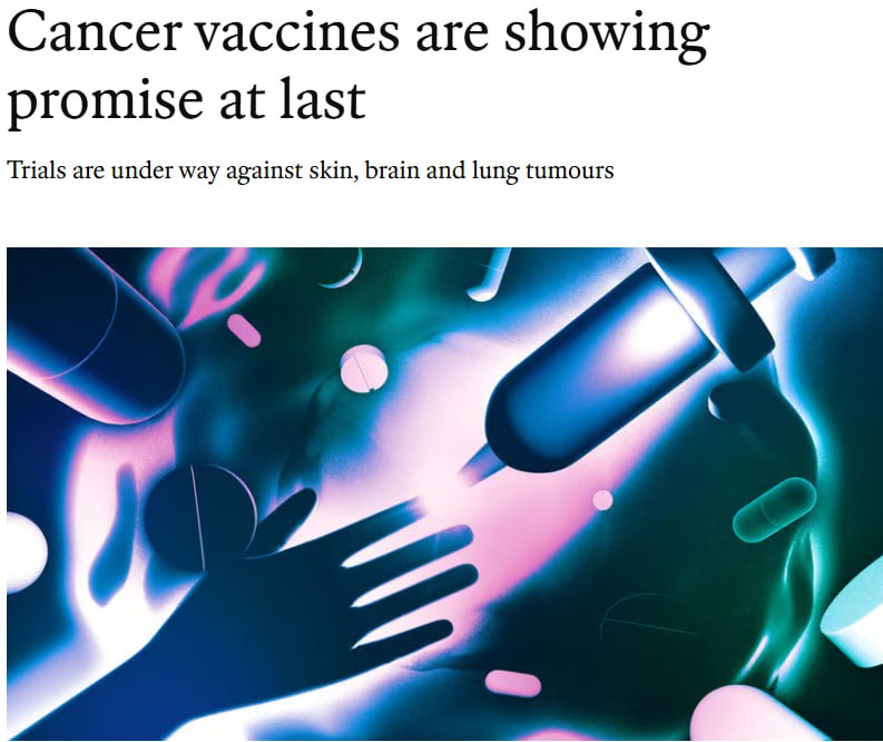 Издание сообщает, что вакцины против рака начали демонстрировать свою эффективность. Их принцип основан на стимулировании иммунной системы к распознаванию и атаке опухолей.