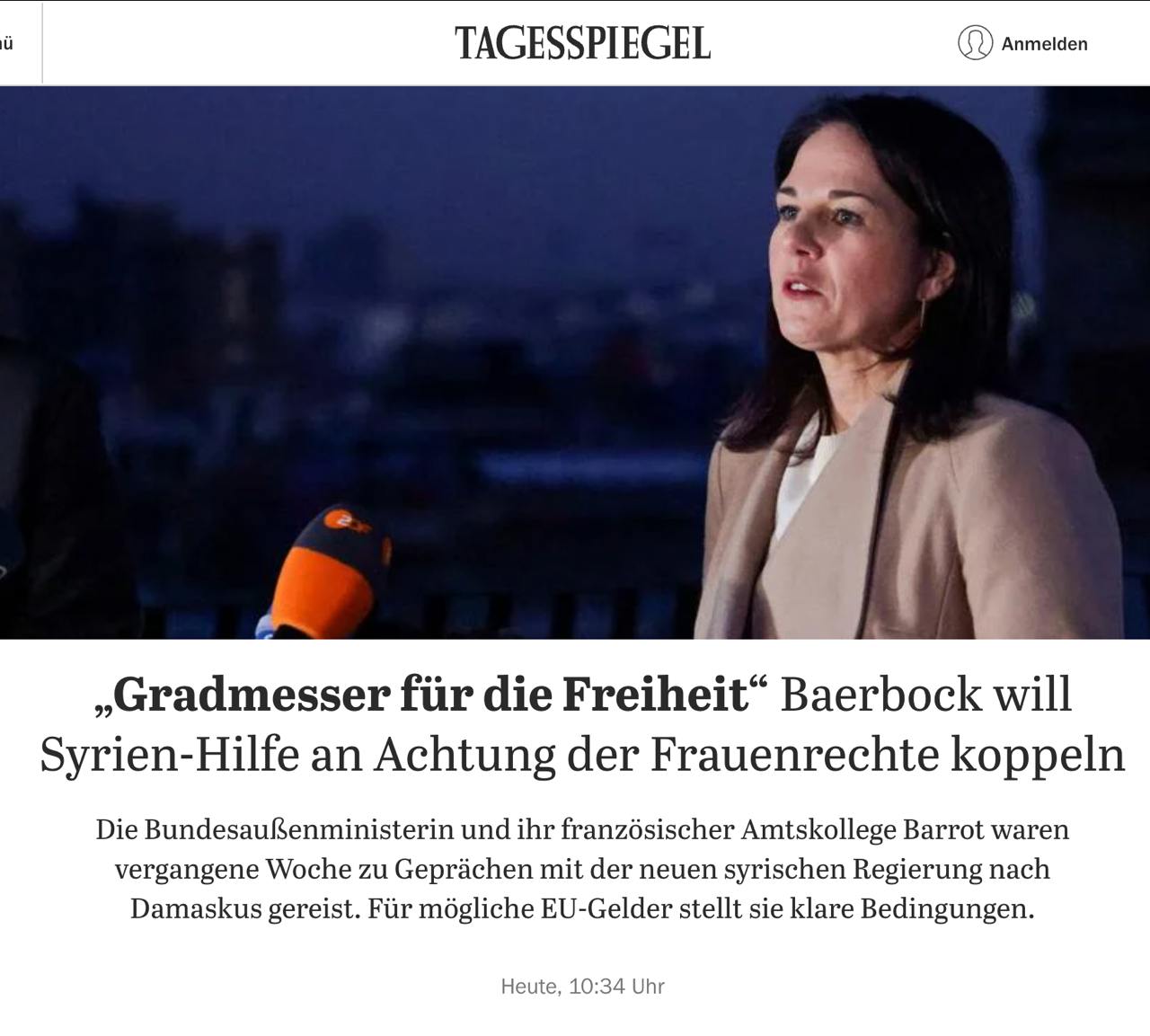 Напомним, главе МИД Германии заретушировали лицо на совместных снимках с новым руководством Сирии, сделанных во время ее визита.