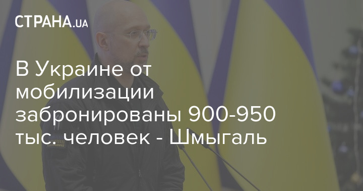 В Украине на сегодня забронированы от мобилизации около 900-950 тысяч человек. Об этом сообщил премьер-министр Денис Шмыгаль во время часа вопросов правительству в Верховной Раде.