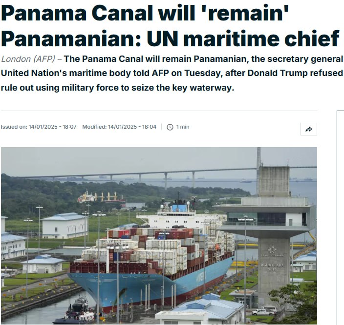 Напомним, что контроль над Панамским каналом назвал одной из целей США Дональд Трамп. Заявления избранного президента Штатов о желании установить контроль над Гренландией и Панамским каналом "на этот раз не шутка" и показывают, что он будет вести Америку к экспансионизму.