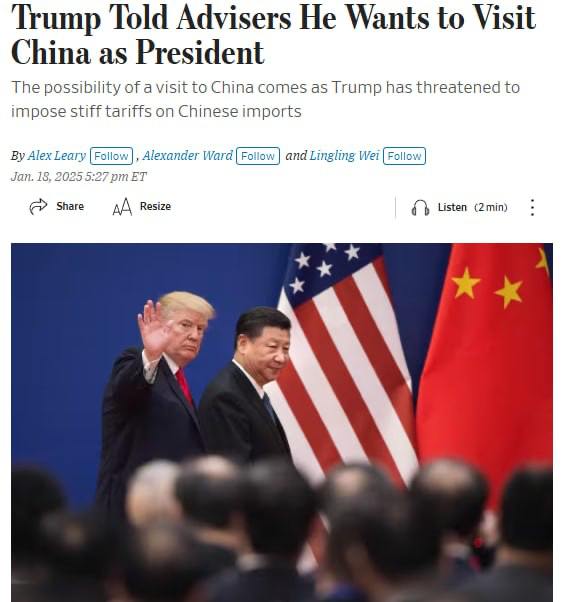 Трамп хочет посетить Китай в один из первых своих визитов после инаугурации - The Wall Street Journal