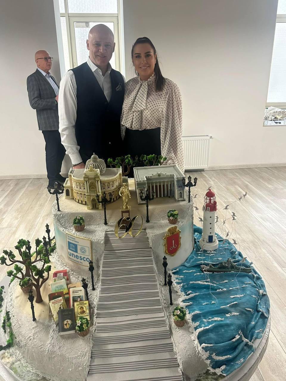 Также на торте виден логотип ЮНЕСКО. Центр Одессы находится под охраной этой организации, так как включен в список объектов всемирного наследия.