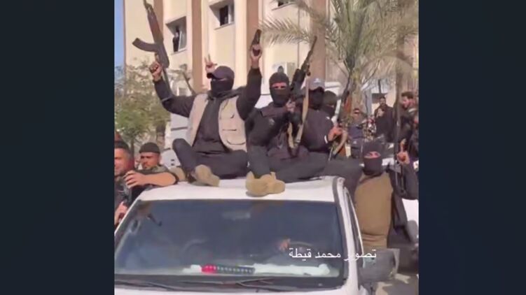 Тем временем в секторе Газа идут демонстрации в честь ХАМАС. Представители движения также присутствуют на улице с оружием в руках.