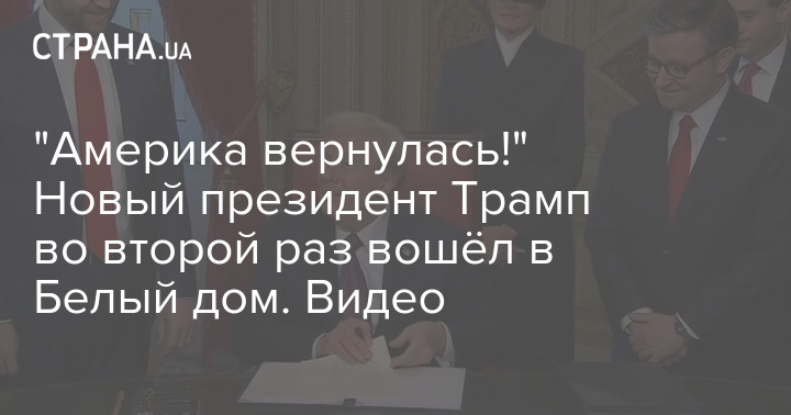 "Америка вернулась!" Новый президент Трамп во второй раз вошёл в Белый дом. Видео