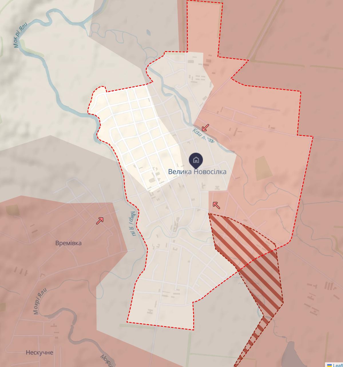 Великая Новоселка почти вся либо в серой зоне, либо под контролем РФ.