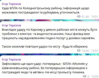 14:18 Об ударе БПЛА по Харькову заявляет мэр города.