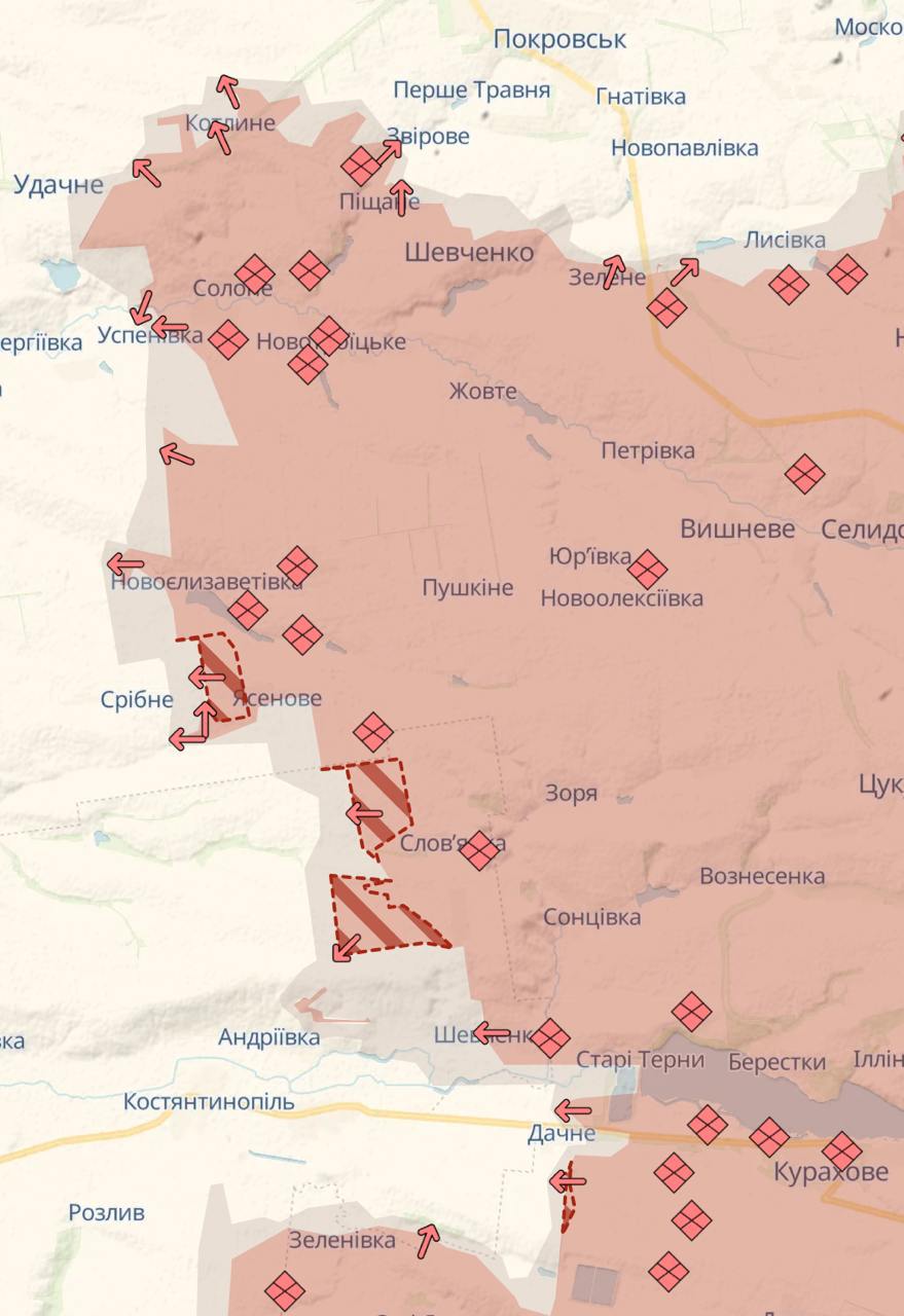 9.24 Армия РФ продвинусь на нескольких участках между Покровском и Курахово, свидетельствует карта Deep State.