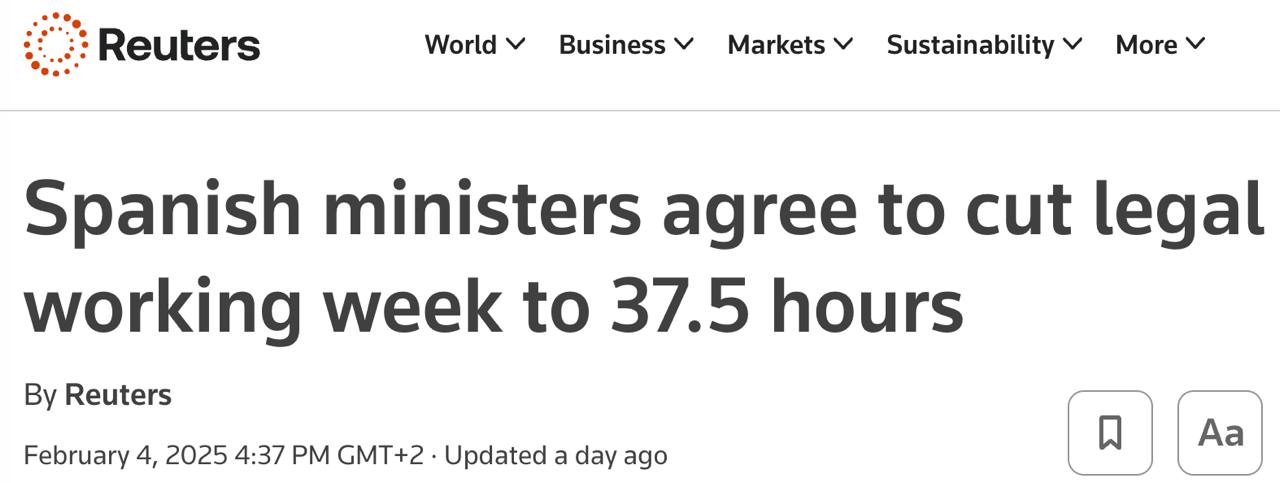 В Испании решили сократить рабочую неделю с 40 до 37,5 часов. Решение уже утвердило правительство страны, однако теперь его должен одобрить еще и парламент.