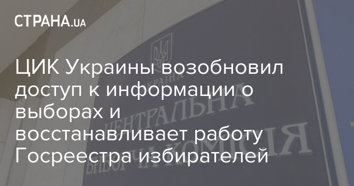 Центральный избирательный комитет (ЦИК) Украины возобновил доступ к информации о выборах на своем сайте и восстанавливает работу Государственного реестра избирателей.