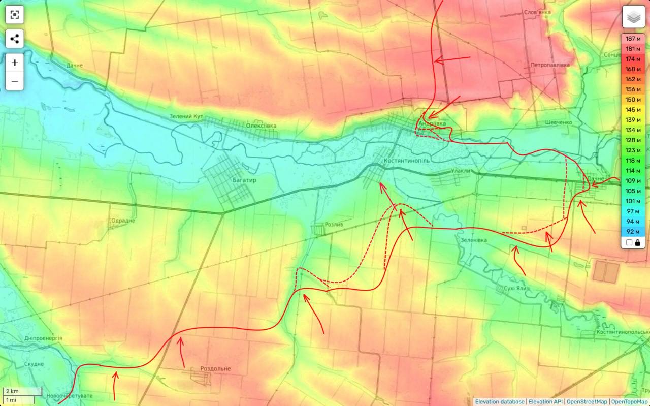 И российские, и украинские военные телеграм-каналы также пишут об интенсивных штурмах Константинополя с юга с периодическим "заскоком" пехоты противника на окраины села.