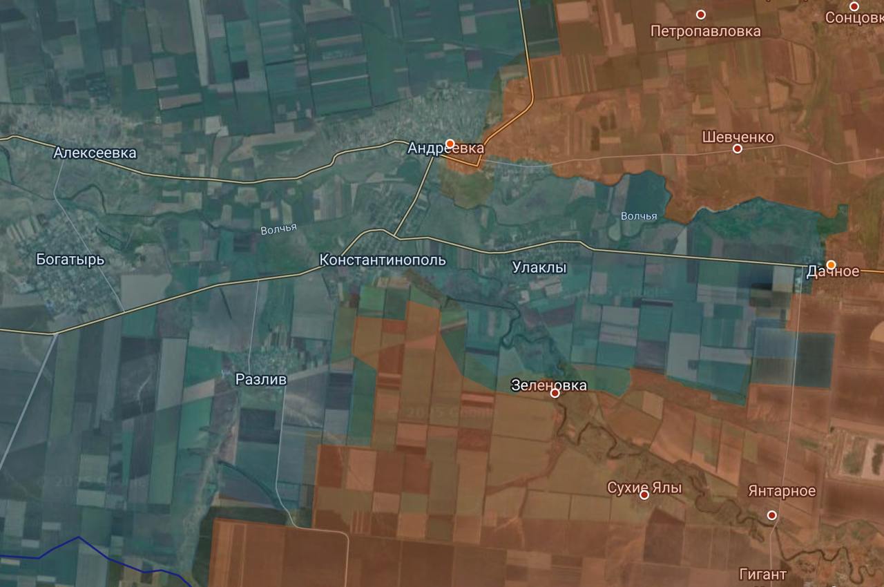 И российские, и украинские военные телеграм-каналы также пишут об интенсивных штурмах Константинополя с юга с периодическим "заскоком" пехоты противника на окраины села.